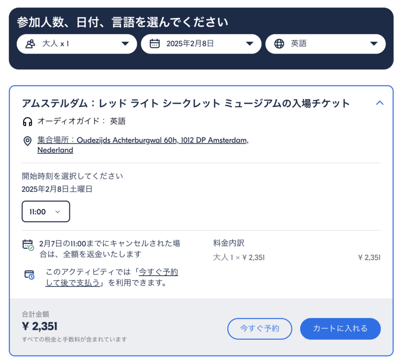 チケット料金は2,500円ほどですが、それ以上の体験ができるので、興味がある方はぜひ予約サイト経由でチケットを購入しておきましょう。