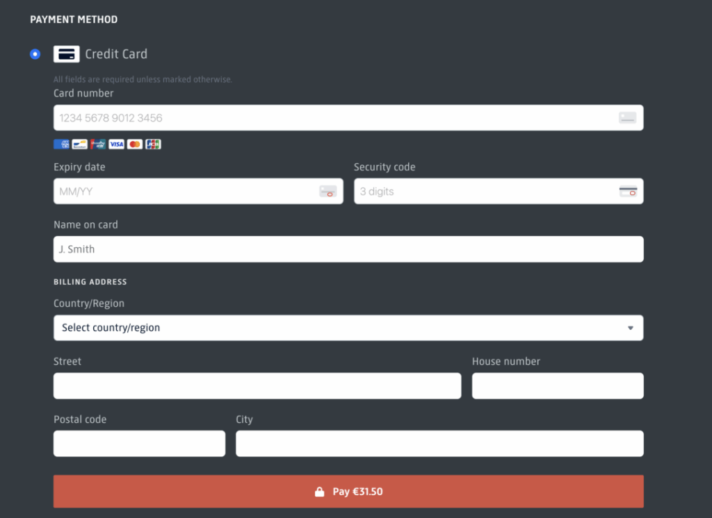 最後に、クレジットカードの決済情報を入力する欄になりますので、正しく入力してPayボタンをタップ