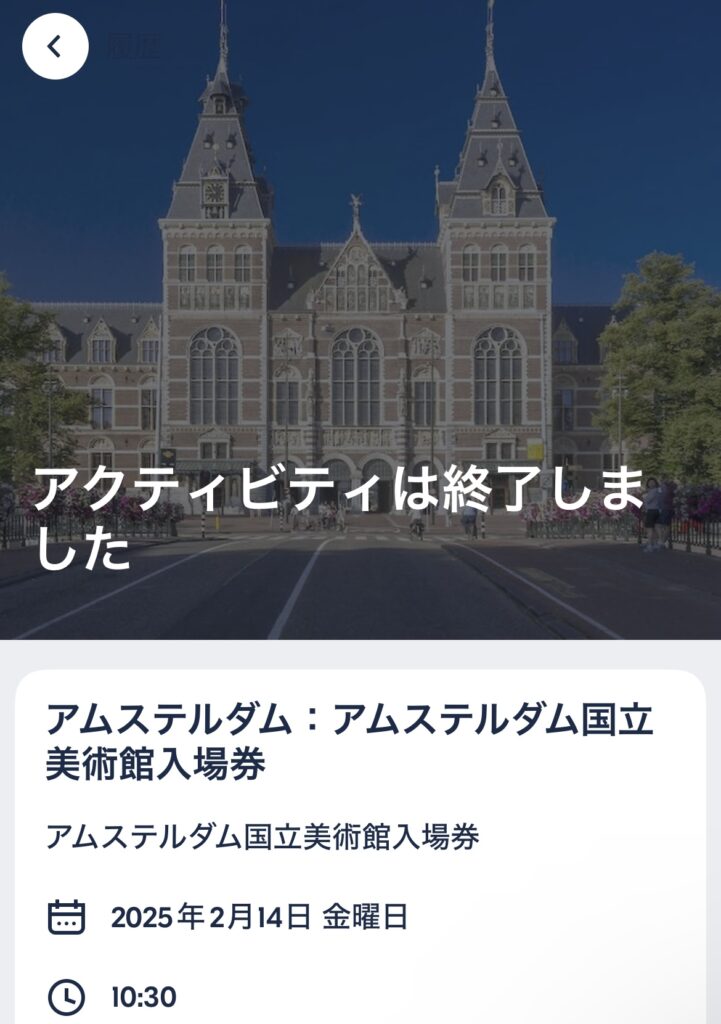 ちなみに、私は「GetYourGuide」というアプリを通して、アムステルダム国立美術館を予約しました。