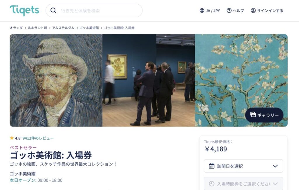 ゴッホ美術館のチケット予約に使えるサイト2つ目は「Tiqets」です。