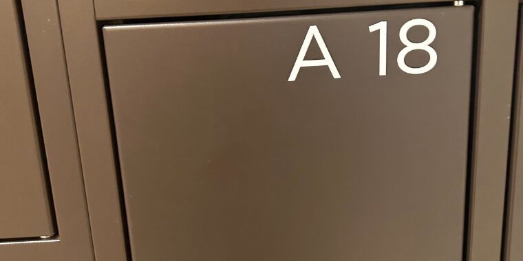 正面には音声ガイドと手荷物を無料で預けられるボックスがあります。