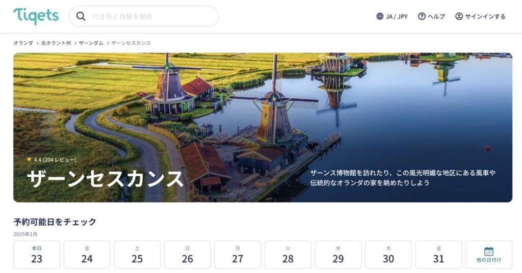 ザーンセスカンス風車村の観光ツアーに関しては、こちらの2サイトがおすすめ。