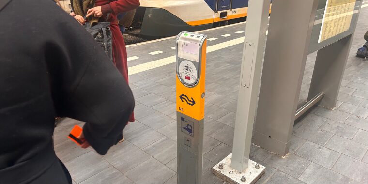 オランダでは、購入したチケットを乗車前に画像の機械でタッチしないと罰金の対象になるようです。