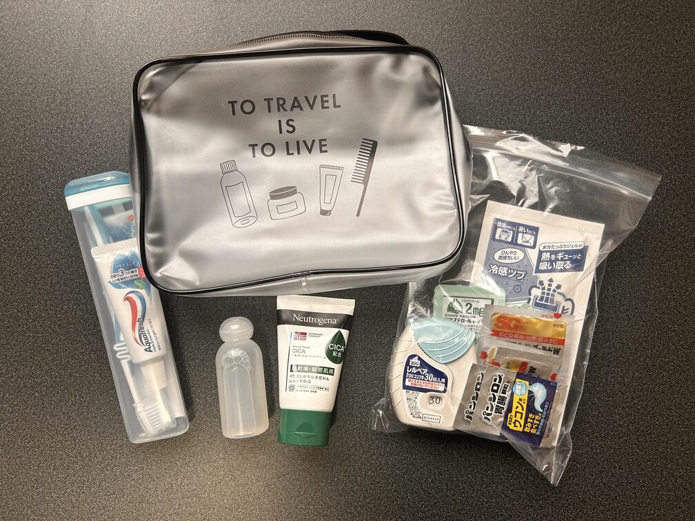 歯ブラシや化粧水に加えて、私はガムや汗拭きシートも持って行きました。ただ、このあたりは個人の好みによるので、自分にとって必要なものを準備すればOKです。