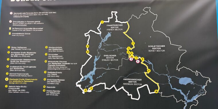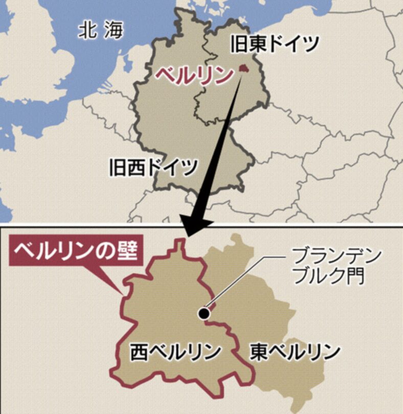 ベルリンの壁というと「アメリカ VS ソ連の冷戦の象徴」として知られており、ベルリンを境に東西がきれいに分かれているイメージでいました。