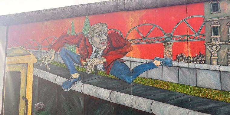 代表作には「ブレジネフとホーネッカーのキス」があり、多くの観光客が訪れていました。