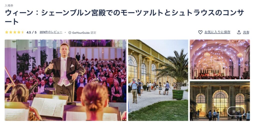 また、GetYourGuideの中で販売されている「シェーンブルン宮殿でのモーツァルトとシュトラウスのコンサート」が個人的にはおすすめです。