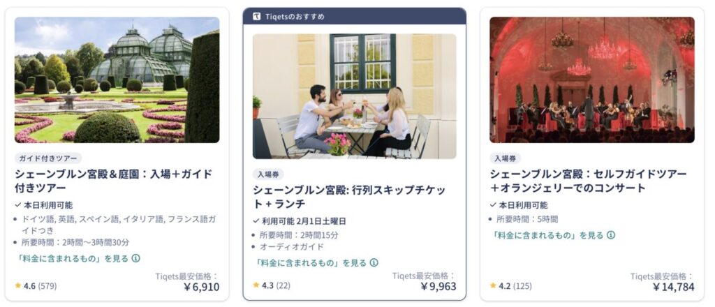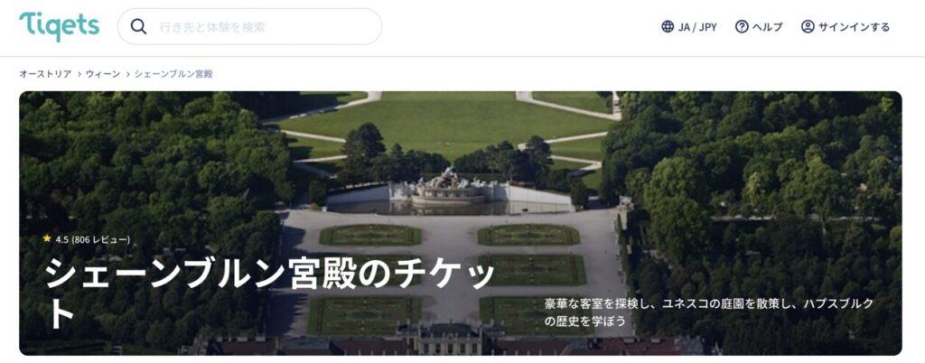 シェーンブルン宮殿のチケット・ツアーを購入したい場合は「Tiqets」がおすすめです。