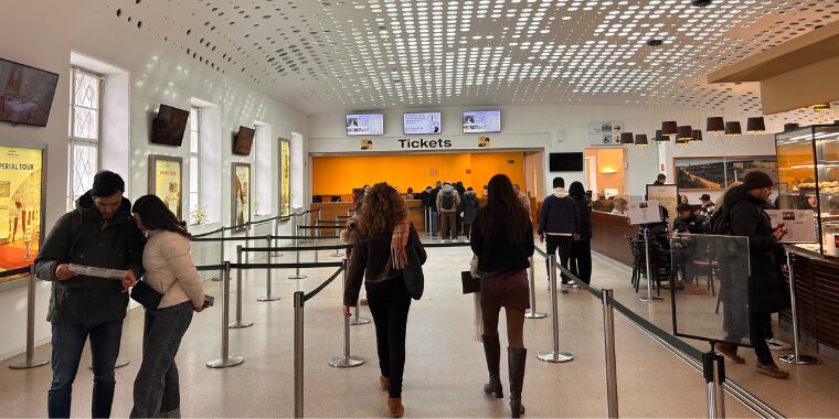 指定時間の数分前になったら、係員にチケットを見せると、入場することができます。