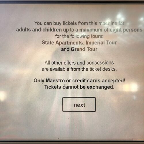 私はここで購入しましたが、宮殿内の入り口付近の機械でも購入できるみたいです。