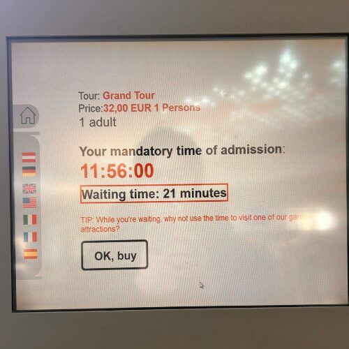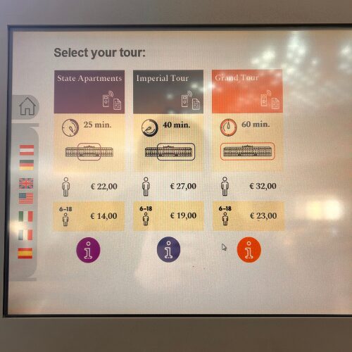 シェーンブルン宮殿の当日券チケットは、宮殿の入り口に入ってすぐ左にあるチケットセンターで機械or受付で購入することができます。